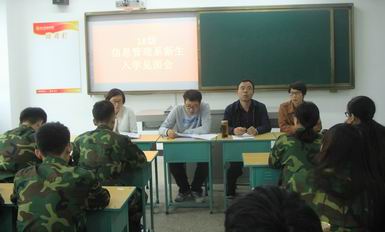 9月18日上午,信息管理系在综合楼301召开2018级新生入学教育会。系党总支书记张治国,系副主任王雪霞,新生班班主任顾鑫鑫,贾蓓蓓及2018级全体新生参加会议。会议由系团委书记张晓通主持。