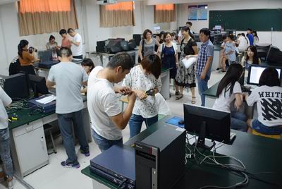 6月18日,信息管理系在实训楼网络技术实训室举办了计算机网络技术大赛。系主任孔丽琴,副主任尤彩虹、王雪霞观摩本次大赛,曹小军老师担任大赛评委。