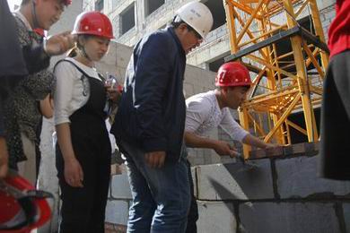 上午八点时,同学们于教学楼施工现场大门口集合,先由工程监理王师傅进行安全教育及施工工地注意事项,而后由专业老师进行任务分配和作业要求。同学们分组后,在王师傅带领依次有序进入施工现场。同学们观看了室内抹灰工程施工,轻质隔墙施工,砌砖施工等并进行了亲自实践。观看过程中,工程监理王师傅对主要工程进行了详细解说,同学们表现出极浓厚的学习兴趣,不时提问,及时向施工师傅请教,解决了很多实际问题,获得了许多实践性的知识技能。