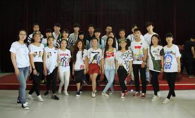 本届手绘大赛,信息管理系选出四名年轻老师与该系一、二年级九个班级的选手共同比赛,将设计作品绘制在白色T恤衫上,由同学们身着作品进行走秀展示。经过该系艺术教研室七位老师评选,评选出了优秀作品八件。