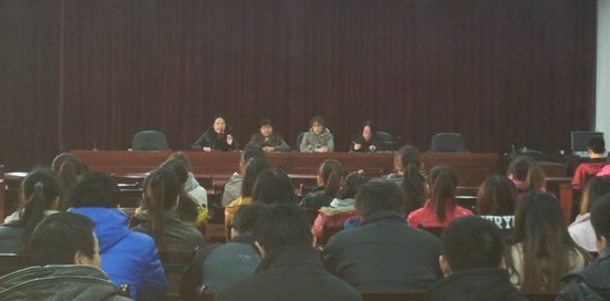 12月4日上午,信息管理系2013届毕业生实习动员大会在实训楼报告厅举行。系主任孔丽琴,系副主任尤彩虹、王雪霞,系团委书记张文斌,毕业班班主任出席了本次会议。会议由系教学秘书侯亚君主持。