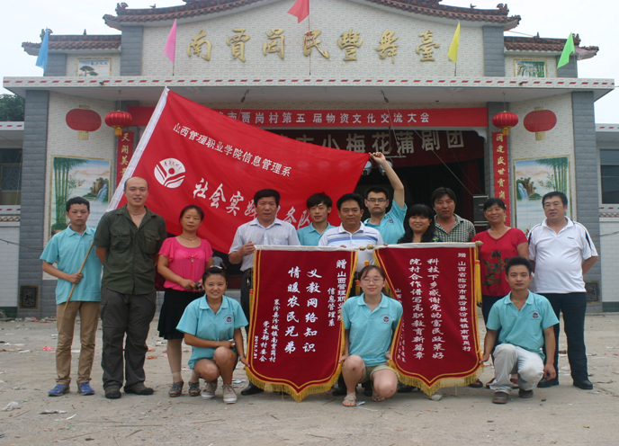 2012年7月15日至20日,信息管理系根据院党委和院团委的部署,由院团委书记和系领导成员带领学生会主席陈浩等一行6人组成的暑期社会实践服务队,前往山西省临汾市襄汾县汾城镇南贾岗村,开展了为期一周的“用专业知识服务村民、落实创建‘青年文明号’”的暑期社会实践活动。本次活动旨在使学生深入农村、了解农村,实现我系“青年文明号”的服务承诺。