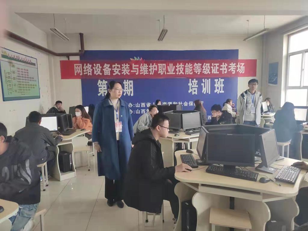 为促进我系“岗课赛证”融合培养模式发展,提升学生就业能力。信息管理系于9月初着手准备1+X“网络设备安装与维护”职业技能等级考试工作。经过3个月的努力,于11月27日顺利完成考试。学院副院长、信息管理系主任尤彩虹老师,亲临考场巡视。