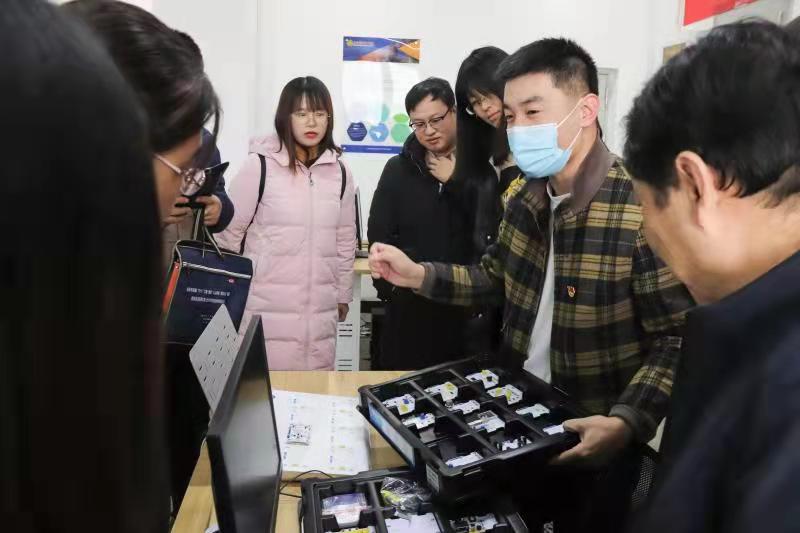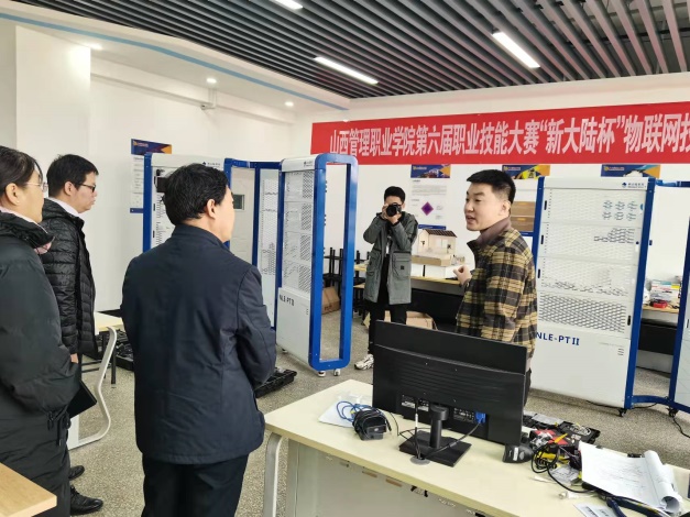 由许昱副校长带队的乡宁职中学习交流团观摩了信息管理系物联网基础创新实训室、物联网工程应用实训室、物联网行业应用实训室。信息管理系物联网应用技术专业负责人杨帆老师就实训室建设、物联网大赛等内容进行了解说,并现场演示了物联网NewLab实训模块、物联网工程应用等内容。