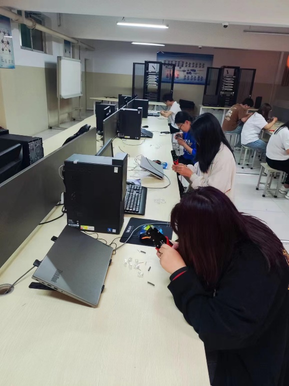 比赛项目包括通信介质制作、网络拓扑搭建、路由交换速配、技术文档编辑。比赛中,参赛选手有条不紊,争分夺秒,展现了娴熟的操作技能和良好的职业水平。经过长达3个小时的激烈角逐,2021级计算机应用技术二班李贝贝荣获冠军。