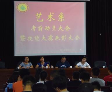 6月22日, 艺术系2017-2018学年第二学期期末考试动员会在实训楼报告厅举行。系党总支书记孔丽琴,系团委书记杨峚,专业教师郭戌娜出席会议。会议由艺术系教师廉艺璇主持。
