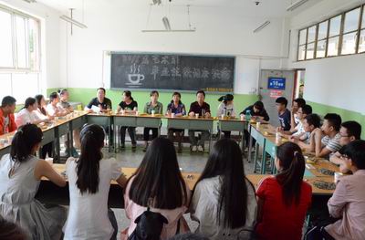 5月24日下午,艺术系2016届毕业生座谈会在教学楼西104教室召开。系党总支书记孔丽琴、系副主任樊伟建、系办公室主任岳俊萍出席。座谈会由系团委书记杨峚主持。
