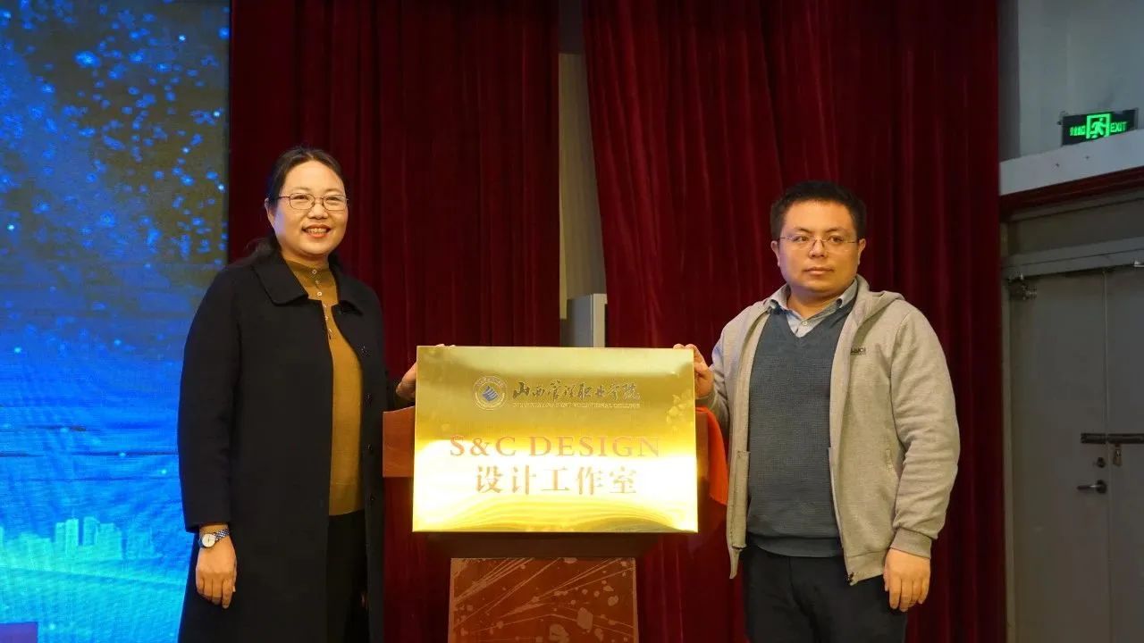 副院长尤彩虹与企业代表张晓鹏为S&C DESIGN设计工作室揭牌